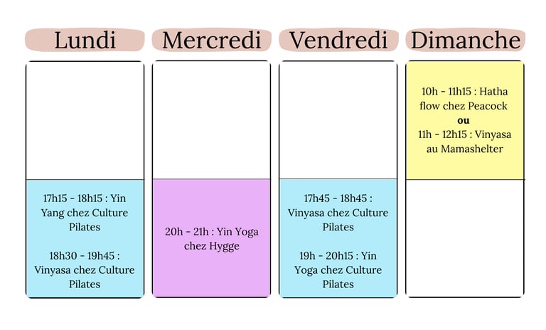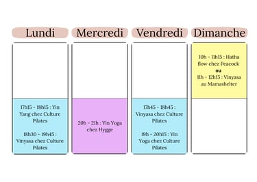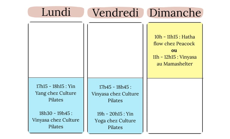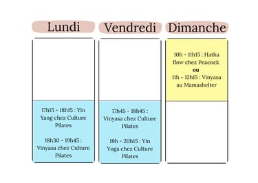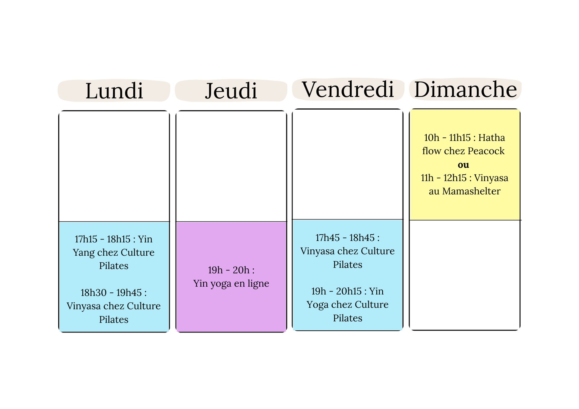 Je te propose différentes approches de Yoga, d'un côté Yang et dynamique et de l'autre, Yin et douce. A adapter selon tes besoins du moment !